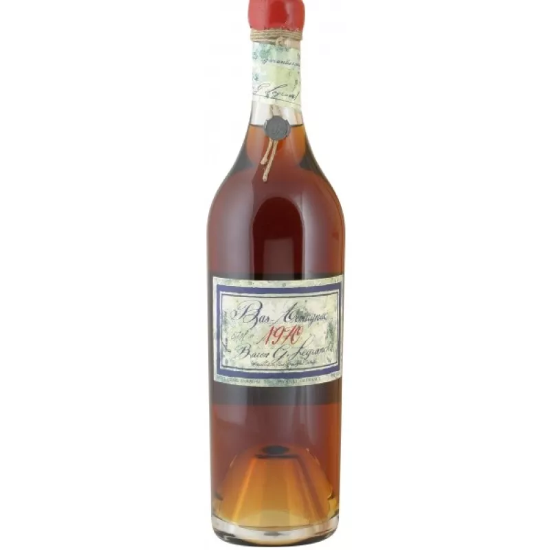 Арманіяк Bas Armagnac Baron Gaston Legrand 1970 (Барон Гастон Легран 1970) - арманьяк з чудовим ароматом фруктів і ванілі, що перетікає в мінеральні ноти, з багатим, сильним смаком, але абсолютно неагресивними спиртами, з яскраво вираженими нотами меду. Є чудовим дижестивом, тобто. сприяє травленню та вживається в кінці трапези, проте якщо він вживається в середині обіду, то до нього підходять копчений лосось, вишукані ковбасні вироби, страви гасконського кухні, фуа-гра, соуси, традиційні фламбе з м'яса та дичини. Арманіяк подається до десерту (арманьяк з яблуком, з шоколадом), при цьому міцність напою пом'якшується солодкою стравою. З ним варто скуштувати ягоди та фрукти — аженський чорнослив, черешню, малину, апельсин. Також арманьяк відмінно поєднується з кавою та сигарами. Температура подачі, З: 20-22 Виноградник: Виноград зібраний у субрегіоні Bas Armagnac. Ґрунти піщані. Спосіб виробництва: Арманьяк готується за технологією коньяку шляхом дистиляції білого виноградного вина в перегінному апараті з подальшою витримкою в дубових бочках. Дистиляцію виноматеріалів здійснюють на шарантських апаратах, що застосовуються в коньячному виробництві та спеціальних арманьячних аламбиках безперервної дії. Спосіб витримки: Наприкінці процесу витримки арманьяк іноді переливають у величезні бочки ємністю 10 тисяч літрів, де його старіння сповільнюється. Бочки з арманьяком зберігаються на земляній підлозі в льохах, збудованих із місцевого каменю. Тому після такого терміну витримки його переливають у скляні чани чи бутлі, де процес старіння припиняється, і арманьяк зберігає свій чудовий аромат.