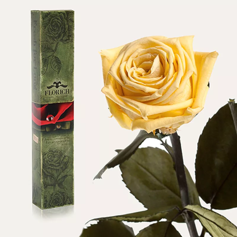 Троянди FLORICH це елітна прикраса будь-якого інтер'єру, і одночасно незабутній подарунок. Адже, що може бути приємніше, ніж букет свіжих троянд вдома, в офісі, ресторані. Квіти FLORICH призначені для того, щоб ними милуватися. Милуватися якомога довше, не турбуючись про звільнення. Вони дарують своїм власникам нев'янучу красу природи і створюють сонячний настрій довгі роки. Довгосвіжі квіти – дорогий подарунок для одержувача та безцінний посильний для тих, хто бажає висловити нескінченну дружбу, кохання чи захоплення. FLORICH – це втілення високих почуттів, час над якими не має влади. Французькі майстри FLORICH, наче майстерні ювеліри, з алмазу зробили діамант - троянду, яка чарівним чином залишається свіжою та прекрасною протягом 5 років. Тонкості цього ремесла зберігаються в таємниці вже понад століття. Дивовижна троянда, що зберігає свіжість роками, та гарна подарункова коробка виконана у стилі «vintage». Такий подарунок інтригує, коли його вручаєш, дивує, коли відкриваєш, а потім довгі роки радує та нагадує про дарувальника. Троянда FLORICH - натуральна, не в'яне протягом 5 років квітка, вирощена в екологічно чистому середовищі. Рослина не потребує води та освітлення. Коли хочуть зробити справді розкішний подарунок, то з прикрас вибирають діаманти, а з квітів віддають перевагу трояндам FLORICH. Адже що краще скаже про почуття дарувальника, ніж квіти, які не в'януть? Цінність цих троянд підкреслює багата подарункова коробка у стилі «vintage». Такий подарунок претендує на №1 у списку найбільш багатозначних та бажаних. Троянда FLORICH - натуральна, не в'яне протягом 5 років квітка, вирощена в екологічно чистому середовищі. Рослина не потребує води та освітлення.