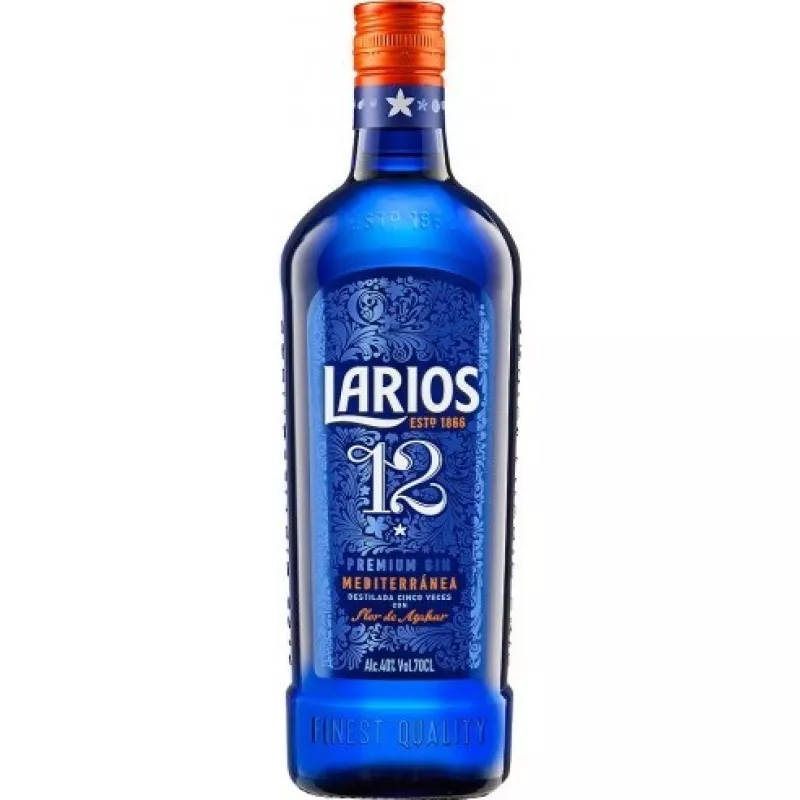 Іспанський джин, виготовлений з використанням 12 рослинних компонентів, які переганяються п'ять разів. Larios 12 виготовлений з рослинної сировини, включаючи дикий ялівець, мускатний горіх, корінь дягиля, коріандр, середземноморський лимон або ангель, мандарин, мандарин, клементин, грейпфрут, лайм та апельсиновий колір. Чистий на смак із затяжною обробкою. Ясність, свіжість аромату та тонкий цитрусовий аромат. Джин має прекрасний аромат з нотками апельсинів, ялівцю, мускатного горіха, кореня ангелики, цитрусів (середземноморських лимонів та апельсинів, мандаринів, кавуна з нотками лайма, шовковистим відтінком апельсинових квітів).