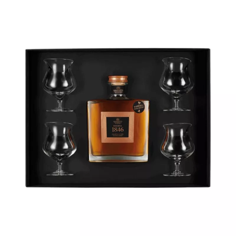 Grappa Riserva 18.46 0,7л 43% дер.скринька+4 келихи (Італія, П'ємонт, ТМ Mazzetti)