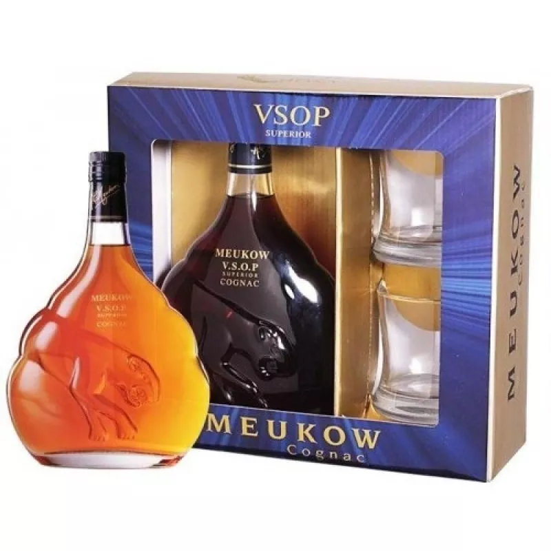 Meukow vsop – це витриманий та м'який коньяк. Коньяк Meukow vsop найкращий у цій категорії. Колір його янтарно-жовтий із позолоченим відтінком. Час настоянки становить 10-12 років у бочках із лімузенського дуба, виготовлених за старими технологіями французькими майстрами. До складу напою входять найкращі коньячні спирти. Аромат цього напою насичений фруктовий з відтінками ванілі та горіха. Смак, збалансований, і включає фруктові, горіхові та ванільні нотки. П'ється коньяк досить м'яко, після першого ковтка у роті з'являється смак персика та винограду. Дуже приємний смак з невеликою насолодою та тривалим післясмаком. Пити цей коньяк потрібно виключно у чистому вигляді. Не варто запивати чи заїдати його, і навіть сигара тут буде не доречно.