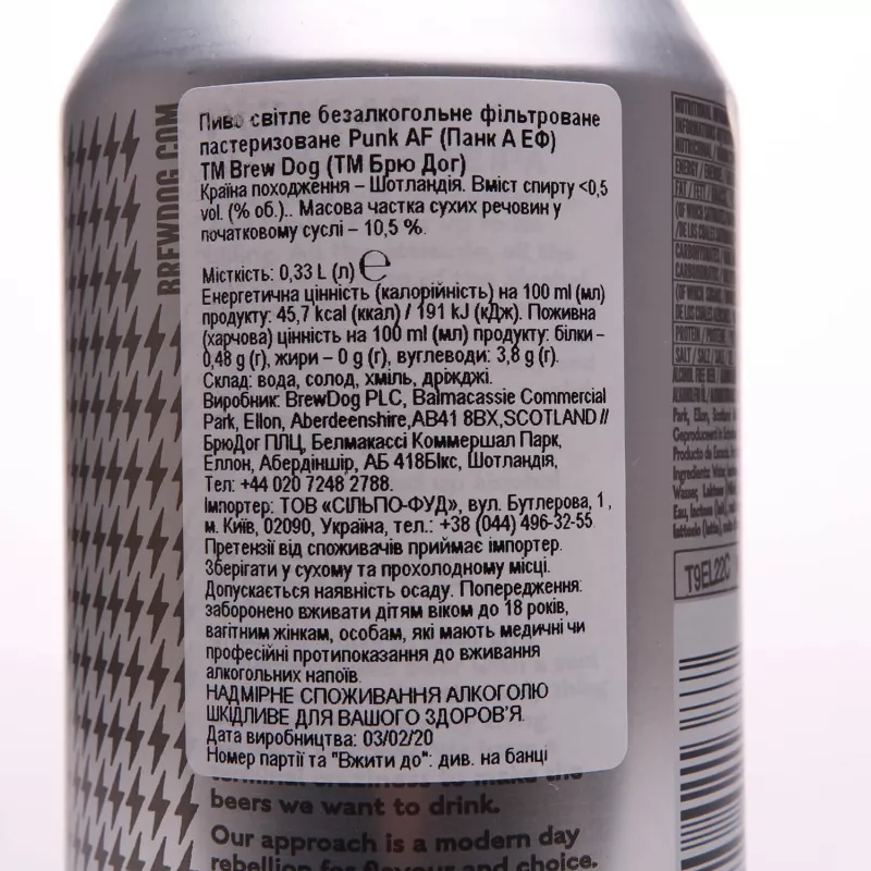 Пиво BrewDog Punk AF світле безалкогольне з/б 0,33% 0,33л (Англія, ТМ BrewDog)