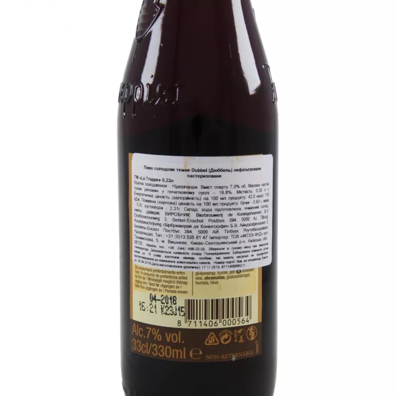 Пиво La Trappe Dubbel темне нефільтроване 0,33% 0.33л (Нідерланди, ТМ La Trappe)