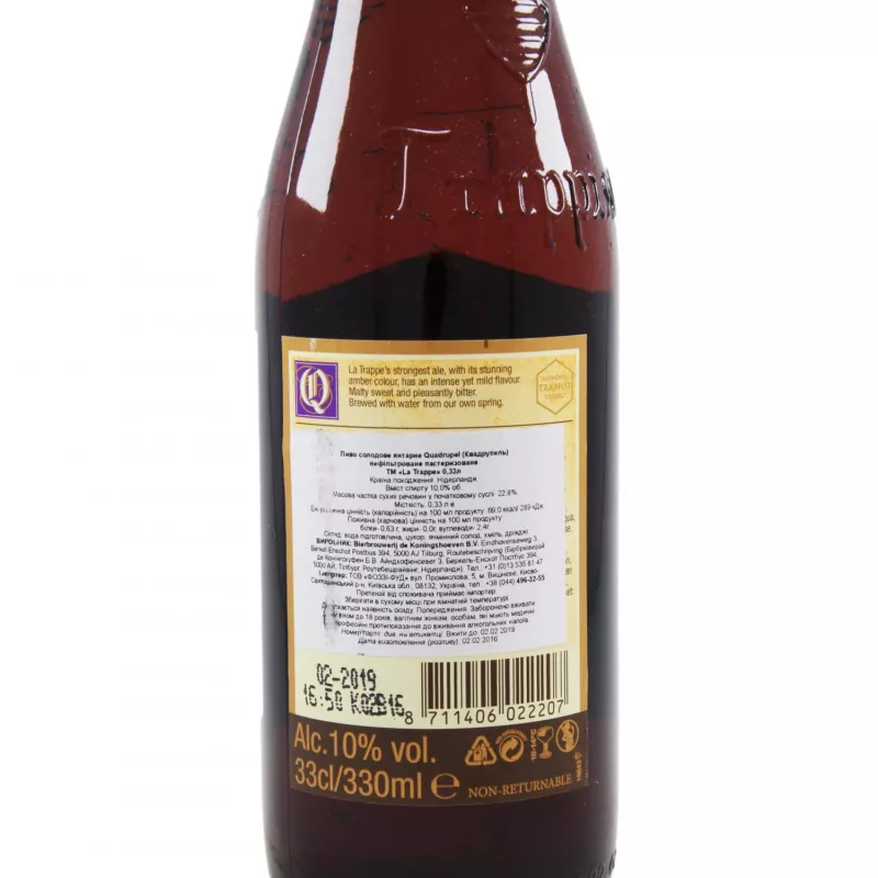 Пиво La Trappe Quadrupel янтарне нефільтроване 0,33% 0.33л (Нідерланди, ТМ La Trappe)
