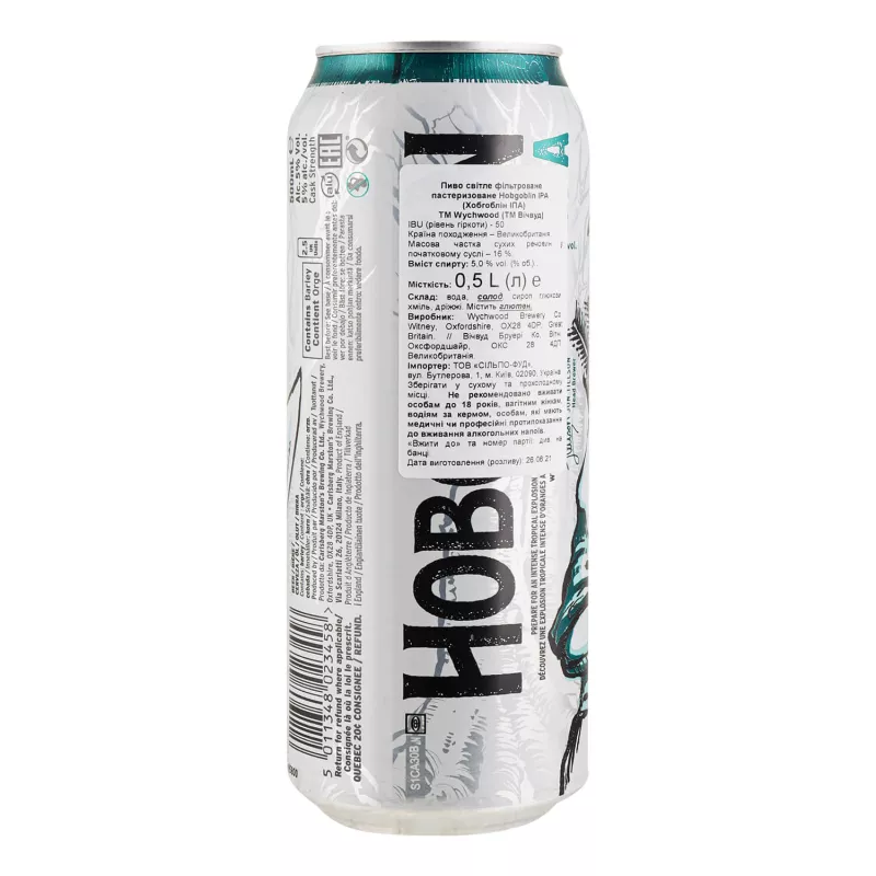 Пиво Wychwood Brewery Hobgoblin IPA світле з/б 0,5% 0,5л (Англія, ТМ Wychwood Brewery)