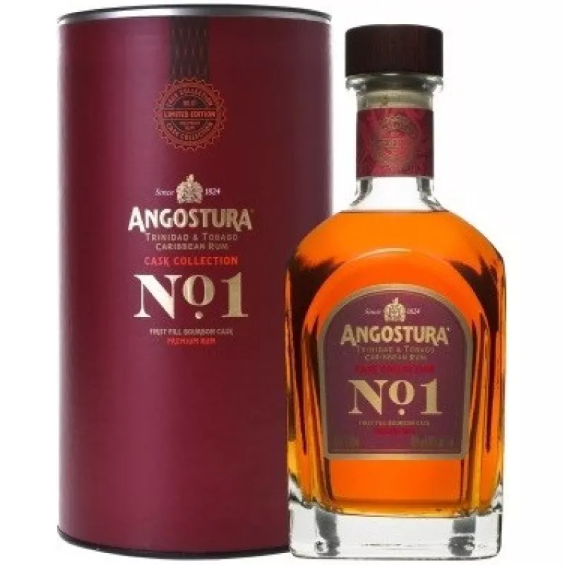 Ром Ангостура Каск Коллекшн №1 16 років витримки 0,7 л. Для приготування рому Angostura Cask Collection №1 використовується меляса - чорна патока, яка є побічним продуктом при переробці цукрової тростини, що містить досить велику кількість цукрів. Патоку розбавляють водою, змішують із дріжджами і залишають блукати. Рідина, що перебродила, дистилюють. Прозорий 73% дистилят проходить подвійну вугільну фільтрацію. Ром витримується 10 років у дубових бочках з-під бурбона з подальшою витримкою найкращих спиртів протягом 6 років у французьких дубових бочках з-під коньяку. В ароматі делікатні тони персика, кураги та мигдального горіха з елегантними нотами дубової бочки. Горіхові та квіткові нюанси у смаку продовжують тони інжиру та фініків. Ром прекрасний у чистому вигляді або з льодом як діжестив і в поєднанні з гарною сигарою.