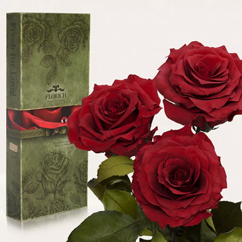 Троянди FLORICH це елітна прикраса будь-якого інтер'єру, і одночасно незабутній подарунок. Адже, що може бути приємніше, ніж букет свіжих троянд вдома, в офісі, ресторані. Квіти FLORICH призначені для того, щоб ними милуватися. Милуватися якомога довше, не турбуючись про звільнення. Вони дарують своїм власникам нев'янучу красу природи і створюють сонячний настрій довгі роки. Довгосвіжі квіти – дорогий подарунок для одержувача та безцінний посильний для тих, хто бажає висловити нескінченну дружбу, кохання чи захоплення. FLORICH – це втілення високих почуттів, час над якими не має влади. Французькі майстри FLORICH, наче майстерні ювеліри, з алмазу зробили діамант - троянду, яка чарівним чином залишається свіжою та прекрасною протягом 5 років. Тонкості цього ремесла зберігаються в таємниці вже понад століття. Дивовижна троянда, що зберігає свіжість роками, та гарна подарункова коробка виконана у стилі «vintage». Такий подарунок інтригує, коли його вручаєш, дивує, коли відкриваєш, а потім довгі роки радує та нагадує про дарувальника. Троянда FLORICH - натуральна, не в'яне протягом 5 років квітка, вирощена в екологічно чистому середовищі. Рослина не потребує води та освітлення. Коли хочуть зробити справді розкішний подарунок, то з прикрас вибирають діаманти, а з квітів віддають перевагу трояндам FLORICH. Адже що краще скаже про почуття дарувальника, ніж квіти, які не в'януть? Цінність цих троянд підкреслює багата подарункова коробка у стилі «vintage». Такий подарунок претендує на №1 у списку найбільш багатозначних та бажаних. Троянда FLORICH - натуральна, не в'яне протягом 5 років квітка, вирощена в екологічно чистому середовищі. Рослина не потребує води та освітлення.