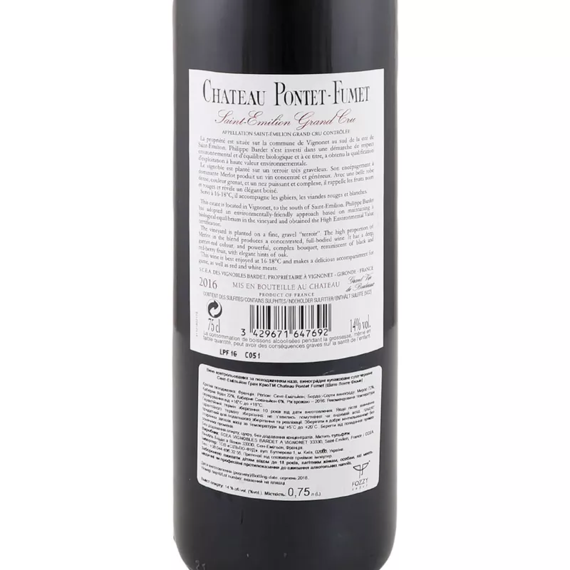 Вино Chateau Pontet-Fumet Saint-Emilion Grand Cru 2011 0,75 л (Франція, ТМ Chateau Pontet Fumet)