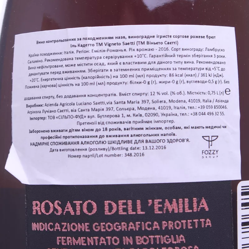 Вино ігристе Vigneto Saetti Il Cadetto Rosat dl`Eml 0,75 л (Італія, ТМ Vigneto Saetti)